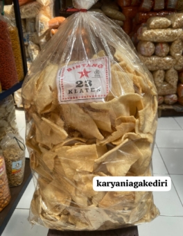 Kulit mlinjo goreng dengan rasa asin gurih yang khas. Renyah dan cocok untuk camilan santai kapan saja.